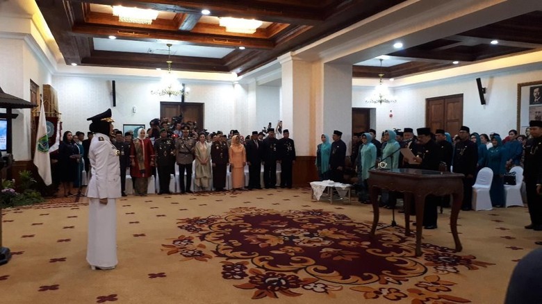 Pelantikan Wali kota-Wakil Wali Kota Batu periode 2017-2022 dipimpin Gubernur Jawa Timur Soekarwo di gedung negara Grahadi, Surabaya, Rabu (27/12/2017).